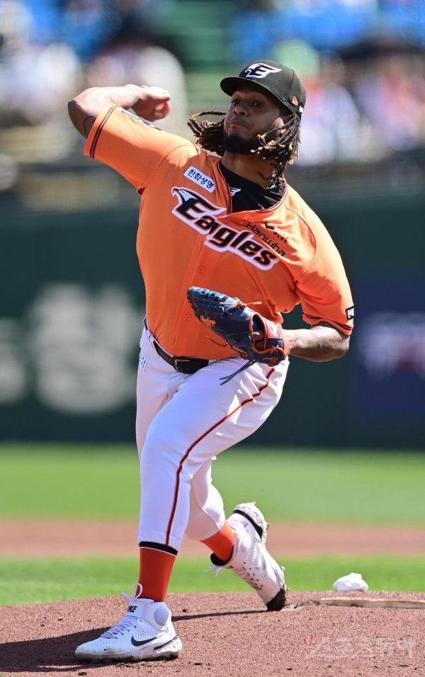 9일 대전 한화생명이글스파크에서 열린 ‘2023 신한은행 SOL KBO리그’ 한화 이글스와 SSG 랜더스의 경기에서 선발 투수로 마운드에 오른 한화 페냐가 역투하고 있다.