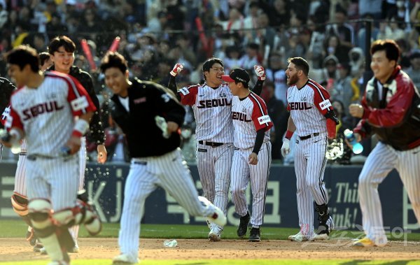 그러나 문보경은 포기하지 않았다. 오재일이 미트에서 공을 빼지 못하는 사이 전력질주해 먼저 베이스를 밟았다. 그 사이 2루주자 문성주는 홈이 비어있는 틈을 놓치지 않고 득점했다. 문보경은 헬멧을 높이 던지며 기뻐했다. 공식기록원이 오재일의 실책을 인정하지 않으면서 문보경의 개인통산 2번째 끝내기안타가 완성됐다. 8회말 상대 2루 견제를 틈타 홈을 파고들다 태그아웃돼 분위기에 찬물을 끼얹었던 문성주도 마음의 짐을 내려놓고 활짝 웃었다. 짜릿한 승리 후 염경엽 LG 감독은 “이기고자 하는 선수들의 집중력이 강했다”고 칭찬했다.