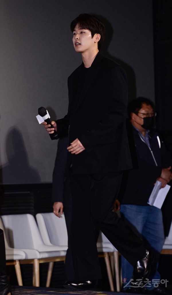 배우 이시우가 10일 서울 송파구 신천동 롯데시네마 월드타워에서 열린 지니TV ‘종이달’ 제작발표회 무대에 오르고 있다.