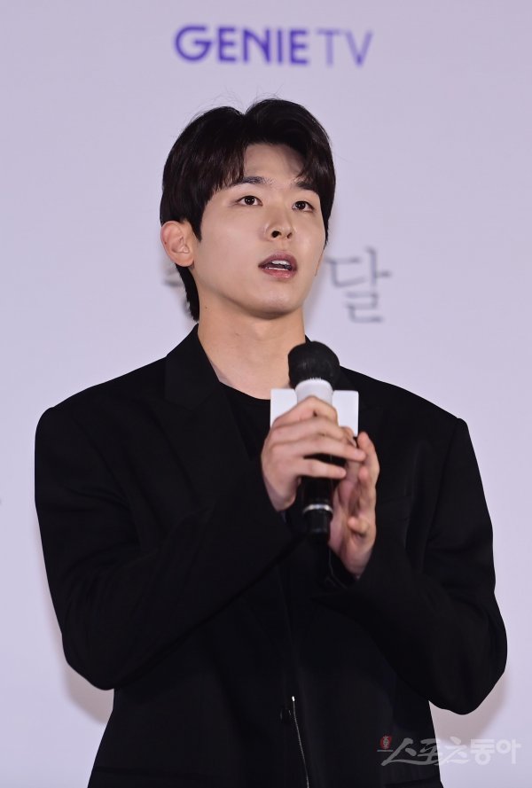 배우 이시우가 10일 서울 송파구 신천동 롯데시네마 월드타워에서 열린 지니TV ‘종이달’ 제작발표회에서 인사말을 하고 있다.