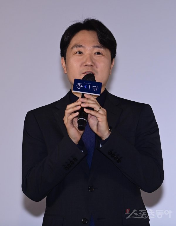 감독 유종선이 10일 서울 송파구 신천동 롯데시네마 월드타워에서 열린 지니TV ‘종이달’ 제작발표회에서 인사말을 하고 있다.