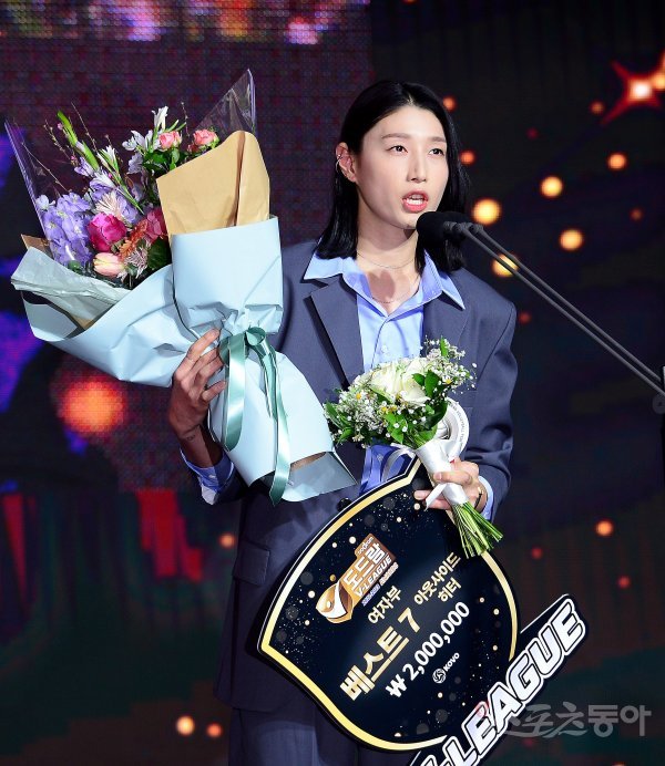 10일 서울 용산구 그랜드하얏트 서울에서 ‘2022-2023 도드람 V리그’ 시상식이 열렸다. 여자부 베스트7 아웃사이드히터-흥국생명 김연경이 소감을 밝히고 있다.