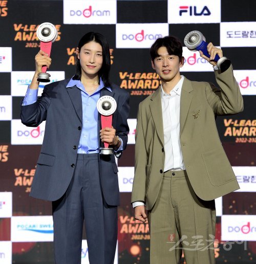 한선수(대한항공)와 김연경(흥국생명)이 ‘도드람 2022~2023 V리그’ 정규리그 남녀 최고의 별로 선정됐다.