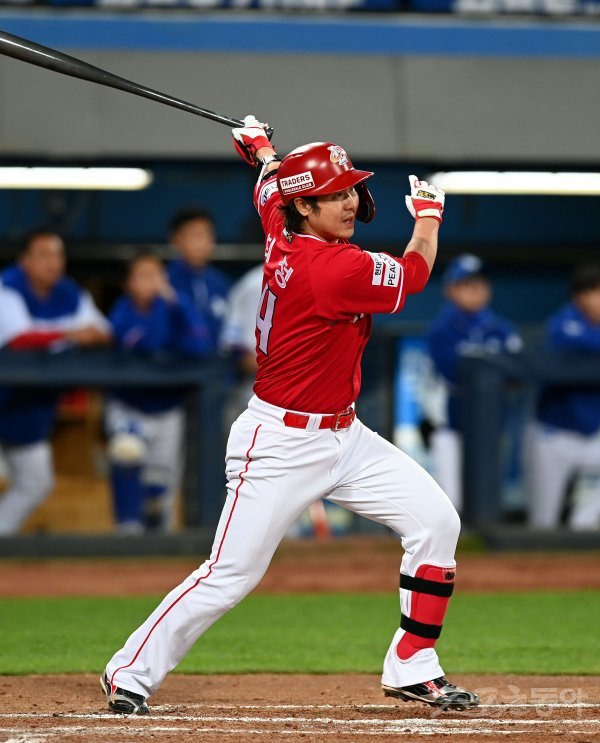 11일 대구 삼성라이온즈파크에서 ‘2023 신한은행 SOL KBO리그’ 삼성 라이온즈와 SSG 랜더스의 경기가 열렸다. 3회초 1사 만루에서 SSG 최정이 2타점 적시타를 날리고 있다.