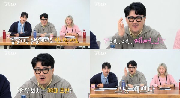 그런가 하면, 한 솔로녀는 자신의 직업을 소개하며 “(‘나는 SOLO’ 출연을 위해 일을) 통으로 빼겠다. (직장 내에서) 가능한 입지”라고 탄탄대로 스펙을 과시한다. 잠시 후 데프콘은 한 솔로녀의 모습을 보자마자, “그냥 예쁘다!”고 ‘광대폭발’ 미소를 발사한다. “사랑에 있어 ‘백전백승’이었다”는 이 솔로녀는 “어렸을 땐 소개팅 나가면 상대방이 거의 좋아해주더라”고 해, ‘솔로나라 14번지’에서도 ‘백전백승 로맨스’를 이어나갈 수 있을지 귀추가 주목된다.