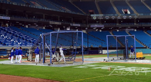 12일 대구 삼성라이온즈파크에서 ‘2023 신한은행 SOL KBO리그’ 삼성 라이온즈와 SSG 랜더스의 경기가 열렸다. SSG에 패하며 6연패에 빠진 삼성 선수들이 경기 후 타격 훈련을 펼치고 있다.