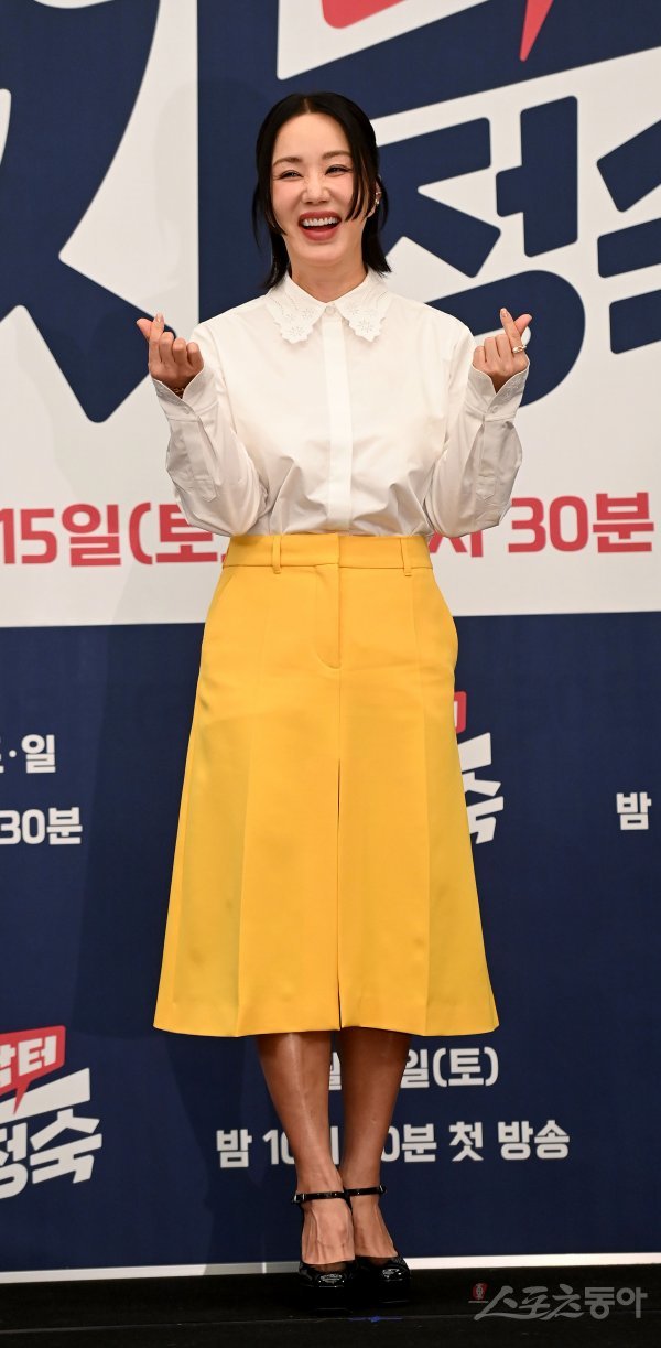배우 엄정화가 13일 서울 강남구 조선 팰리스 강남에서 열린 JTBC ‘닥터 차정숙’ 제작발표회에서 포토타임을 갖고 있다.