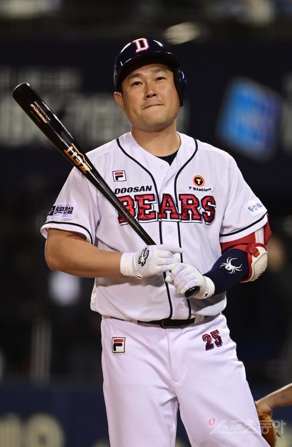 13일 서울 잠실야구장에서 열린 ‘2023 신한은행 SOL KBO리그’ 두산 베어스와 키움 히어로즈의 경기에서 4회말 1사 1루 두산 양의지가 삼진 아웃을 당한 후 아쉬워하고 있다.