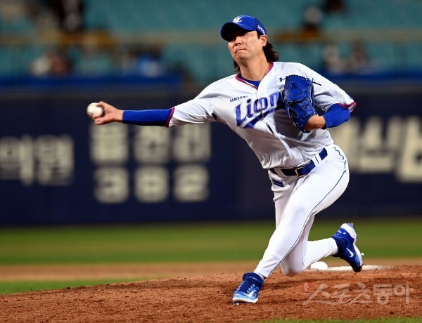 13일 대구 삼성라이온즈파크에서 ‘2023 신한은행 SOL KBO리그’ 삼성 라이온즈와 SSG 랜더스의 경기가 열렸다. 7회초 2사 3루에서 삼성 우규민이 구원 등판해 볼을 던지고 있다.