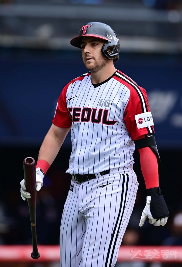 16일 서울 잠실야구장에서 열린 ‘2023 신한은행 SOL KBO리그’ LG 트윈스와 두산 베어스의 경기에서 4회말 1사 LG 오스틴이 삼진 아웃을 당한 후 아쉬워하고 있다.