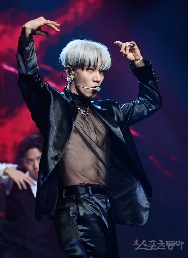 가수 이기광이 17일 서울 강남구 청담동 일지아트홀에서 열린 첫 솔로 정규앨범 ‘Predator(프레데터)’ 발매 기념 프레스 쇼케이스에서 동명의 타이틀곡 무대를 펼치고 있다.