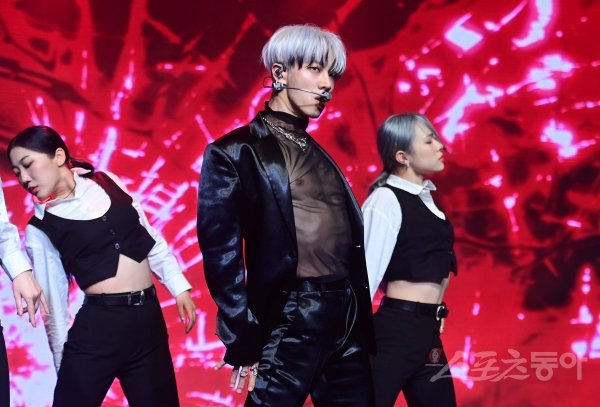 가수 이기광이 17일 서울 강남구 청담동 일지아트홀에서 열린 첫 솔로 정규앨범 ‘Predator(프레데터)’ 발매 기념 프레스 쇼케이스에서 동명의 타이틀곡 무대를 펼치고 있다.