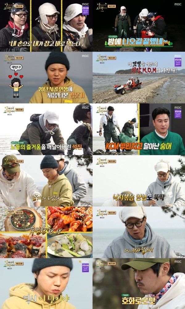 이날 M.O.M은 칠흑 같은 어둠을 가로지르며 야간 해루질에 도전했다. 낮에는 갯벌을 파야 볼 수 있지만, 밤이 더 활발히 활동하는 낙지를 잡기 위해 나선 것. 한 치 앞도 잘 안 보이는 상황에서도 꺾이지 않는 마음으로 포기하지 않은 끝에 낙지를 수확해 감탄을 자아냈다.