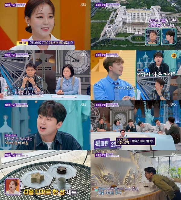 17일 방송된 JTBC ‘톡파원 25시’에서는 출장 ‘톡파원’ 알파고가 안내한 루마니아 랜선 여행부터 덴마크 소도시, 프랑스 명품 디저트 투어까지 신선한 재미를 선사했다. 스튜디오에는 JTBC 백다혜 아나운서가 자리를 빛냈다.