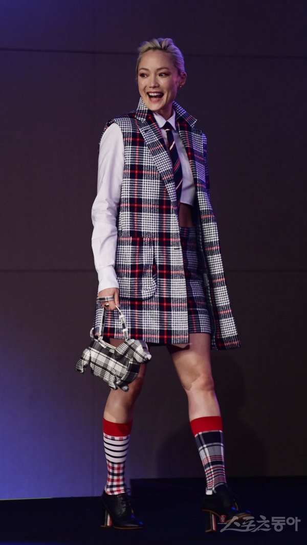 배우 폼 클레멘티에프가 18일 서울 영등포구 여의도동 콘래드 서울에서 열린 ‘가디언즈 오브 갤럭시: Volume 3‘ 내한 기자간담회 무대에 오르고 있다.