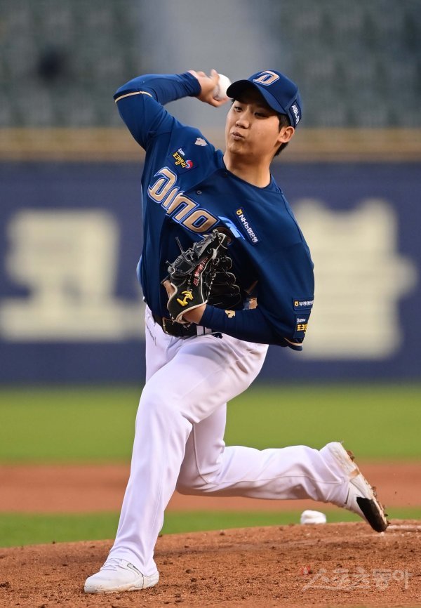 18일 서울 잠실야구장에서 열린 ‘2023 신한은행 SOL KBO리그’ LG 트윈스와 NC 다이노스의 경기에서 선발 투수로 마운드에 오른 NC 이용준이 역투하고 있다.