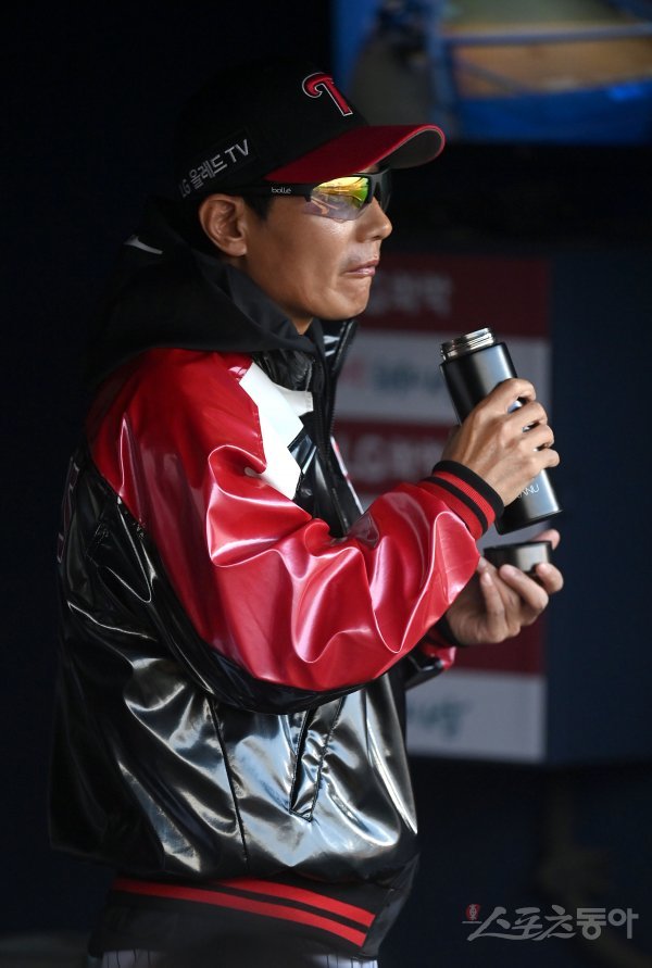 19일 서울 잠실야구장에서 ‘2023 신한은행 SOL KBO리그’ NC 다이노스와 LG 트윈스 경기가 열렸다. LG 염경엽 감독이 음료를 마시고 있다.