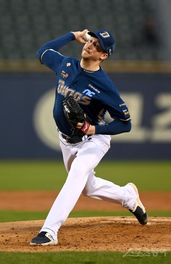 19일 서울 잠실야구장에서 ‘2023 신한은행 SOL KBO리그’ NC 다이노스와 LG 트윈스 경기가 열렸다. 선발 투수로 등판한 NC 페디가 역투하고 있다.