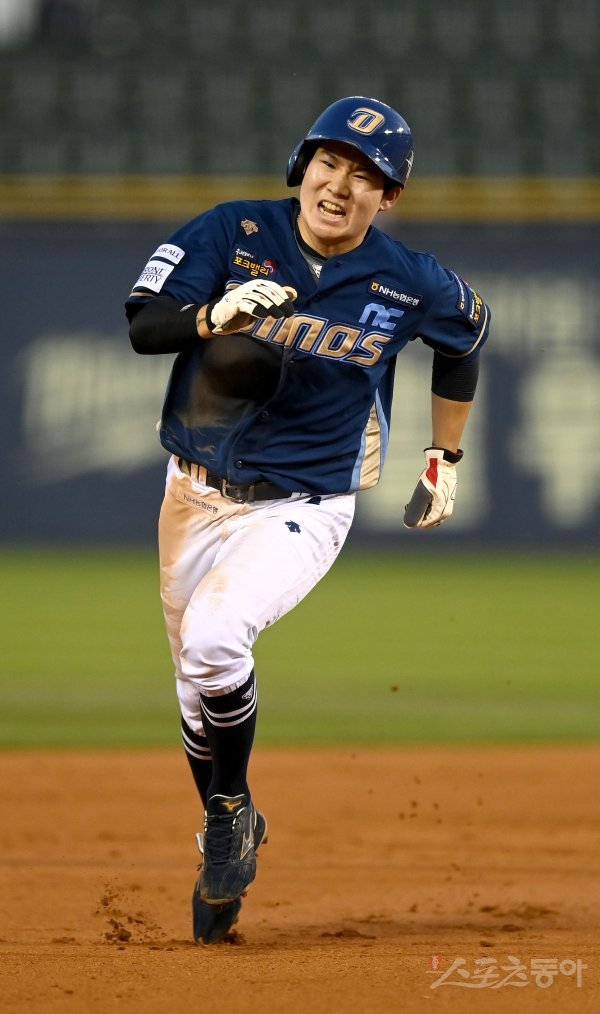 19일 서울 잠실야구장에서 ‘2023 신한은행 SOL KBO리그’ NC 다이노스와 LG 트윈스 경기가 열렸다. 3회초 무사 1루 NC 중전 2루타 때 1루주자 박민우가 3루까지 달리고 있다.