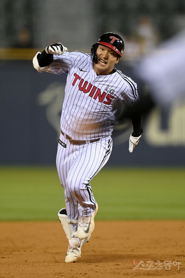 19일 서울 잠실야구장에서 ‘2023 신한은행 SOL KBO리그’ NC 다이노스와 LG 트윈스 경기가 열렸다. 7회말 1사 만루 LG 문보경이 역전 싹쓸이 중전 안타를 치고 3루까지 달리고 있다.