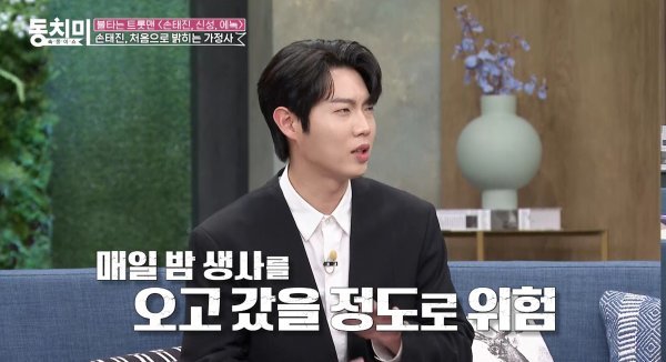 이날 손태진은 “선천적으로 심장이 안 좋게 태어나서 인큐베이터 생활을 한 달 반 정도 했다. 그때 부모님이 ‘오늘 밤을 넘길 수 있을지 모르겠다. 50대50이다’라는 이야기를 들은 적이 있다”고 과거 생사를 오갔던 급박한 상황이 있었다고 말한다.