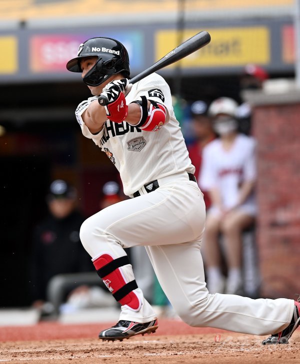 23일 인천 SSG 랜더스필드에서 ‘2023 신한은행 SOL KBO리그’ SSG 랜더스와 키움 히어로즈의 경기가 열렸다. 4회말 2사 1, 2루에서 SSG 최정이 1타점 적시타를 날리고 있다.