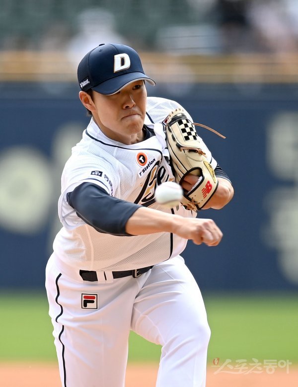 23일 서울 잠실야구장에서 ‘2023 신한은행 SOL KBO리그’ KT 위즈와 두산 베어스 경기가 열렸다. 선발 투수로 등판한 두산 최원준이 역투하고 있다.