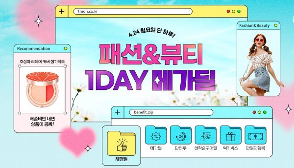 티몬은 24일 단 하루 패션과 뷰티 인기 아이템을 할인 판매하는 ‘1데이 메가딜’ 행사를 연다. ‘스파오’의 봄·여름 시즌 베스트 아이템 특가전을 열고 전용 쿠폰을 제공한다. ‘자주’의 홈웨어·언더웨어 등도 할인에 추가 쿠폰 혜택으로 만나볼 수 있다. 24일 오후 7시에는 ‘티몬플레이’에서 특별 라방도 진행한다. 이정민 티몬 패션&뷰티사업본부장은 “본격적인 나들이 시즌을 맞아, 더 강력해진 원데이 혜택을 더해 행사를 열게 됐다”고 말했다.