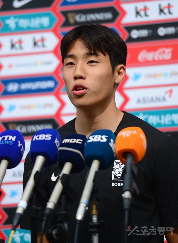 2023 국제축구연맹(FIFA) 아르헨티나 20세 이하(U-20) 월드컵 출전을 앞둔 U-20 축구대표팀이 24일 파주 국가대표트레이닝센터(NFC)에서 소집 훈련을 가졌다. 훈련 전 이승준이 인터뷰를 하고 있다.