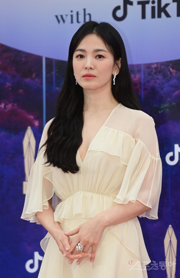 배우 송혜교가 28일 인천 중구 운서동 파라다이스시티에서 열린 ‘제59회 백상예술대상’ 레드카펫에서 포즈를 취하고 있다.