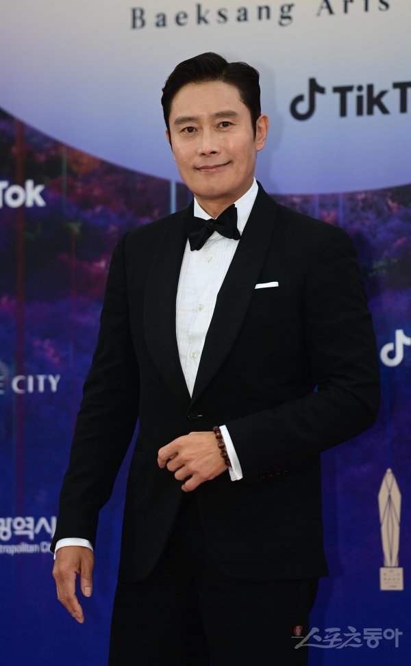 배우 이병헌이 28일 인천 중구 운서동 파라다이스시티에서 열린 ‘제59회 백상예술대상’ 레드카펫에서 포즈를 취하고 있다.