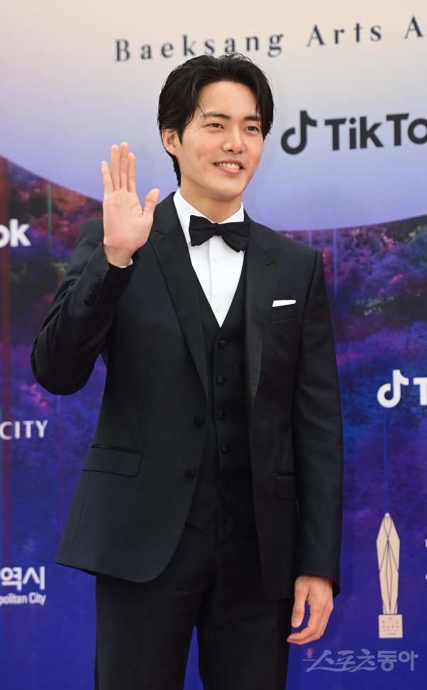 배우 김건우가 28일 인천 중구 운서동 파라다이스시티에서 열린 ‘제59회 백상예술대상’ 레드카펫에서 포즈를 취하고 있다.