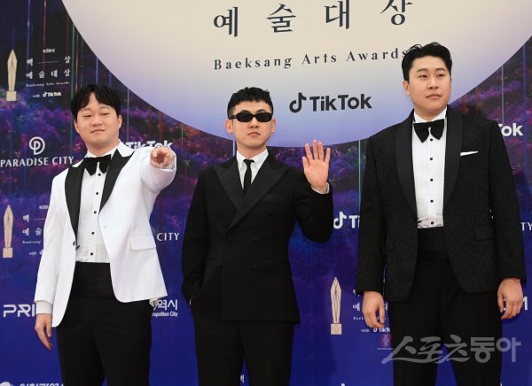 코미디그룹 피식대학이 28일 인천 중구 운서동 파라다이스시티에서 열린 ‘제59회 백상예술대상’ 레드카펫에서 포즈를 취하고 있다.