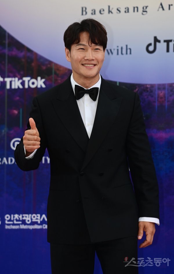방송인 김종국이 28일 인천 중구 운서동 파라다이스시티에서 열린 ‘제59회 백상예술대상’ 레드카펫에서 포즈를 취하고 있다.
