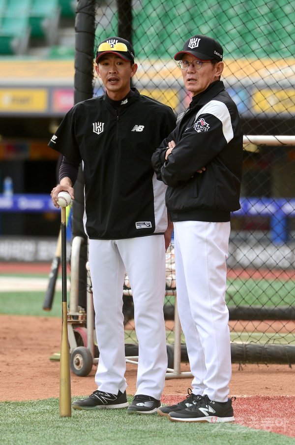 2일 인천SSG랜더스필드에서 ‘2023 신한은행 SOL KBO리그’ KT 위즈와 SSG 랜더스 경기가 열린다. KT 이강철 감독이 박기혁 코치와 이야기하고 있다.