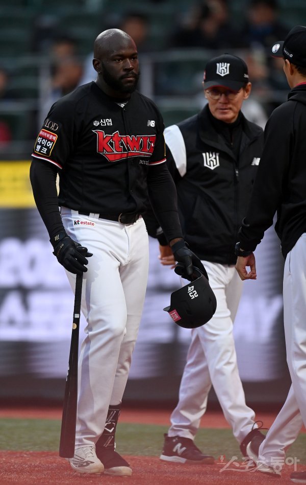 2일 인천SSG랜더스필드에서 ‘2023 신한은행 SOL KBO리그’ KT 위즈와 SSG 랜더스 경기가 열렸다. 3회초 무사 KT 알포드가 부상으로 교체되고 있다.