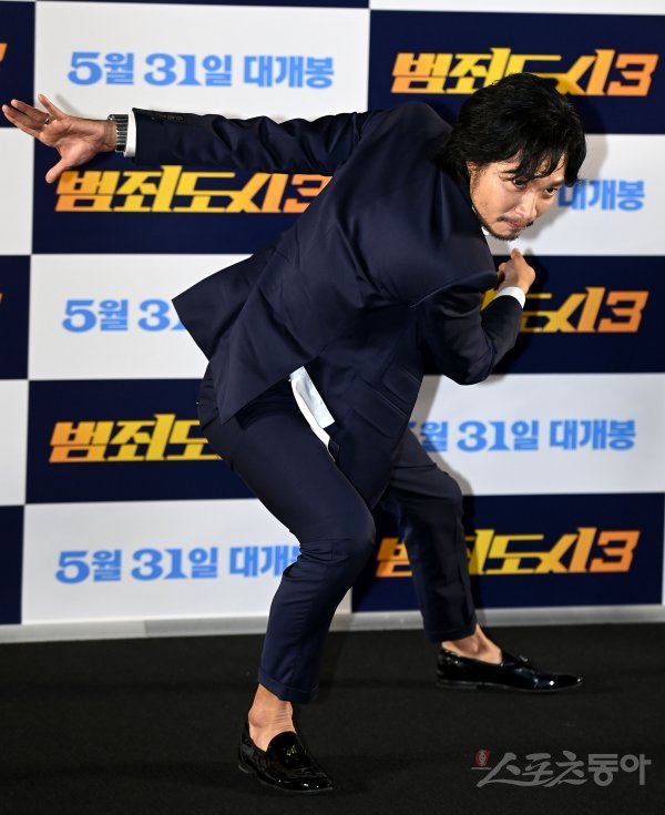 배우 아오키 무네타카가 서울 강남구 인터컨티넨탈 코엑스에서 열린 ‘범죄도시3’ 제작보고회에서 포토타임을 갖고 있다.
