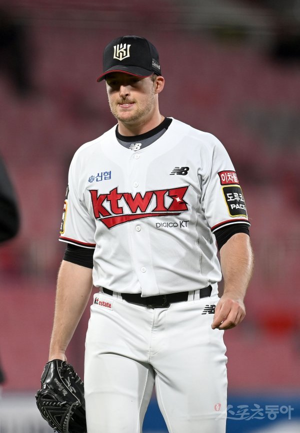 9일 수원KT위즈파크에서 ‘2023 신한은행 SOL KBO리그’ NC 다이노스와 KT 위즈 경기가 열렸다. KT 선발 벤자민이 4회초 1사 2루 상황에서 교체되고 있다.
