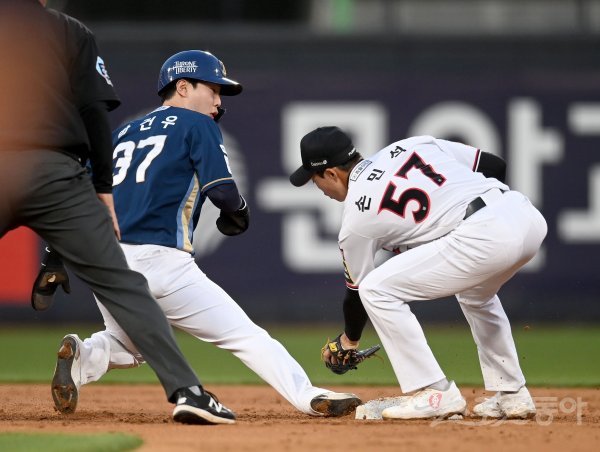 11일 수원KT위즈파크에서 ‘2023 신한은행 SOL KBO리그’ NC 다이노스와 KT 위즈 경기가 열렸다. 3회초 1사 1루 NC 안타 때 1루주자 박건우가 오버런 했으나 빠르게 귀루해 세이프 되고 있다.