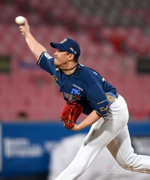 11일 수원KT위즈파크에서 ‘2023 신한은행 SOL KBO리그’ NC 다이노스와 KT 위즈 경기가 열렸다. 9회말 등판해 1이닝을 무실점으로 막으며 세이브를 따낸 NC 이용찬이 역투하고 있다.