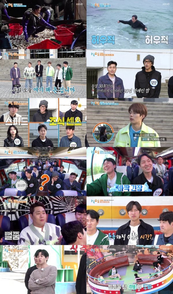 이날 방송은 유선호가 ‘1박 2일’의 새로운 불운의 사나이로 등극, 첫 조업과 일몰 퇴근 벌칙을 수행하는 모습으로 시작했다. 유선호는 설렘 반 불안 반의 마음으로 조업 장소에 도착했고 거침없이 생선을 나르며 반전 매력을 뽐냈다. 그는 일몰 퇴근 벌칙까지 모두 수행했다.