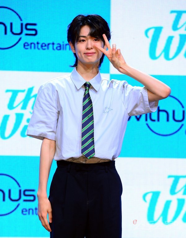5세대 신인 보이그룹 더윈드(The Wind) 장현준이 15일 서울 마포구 신한 play 스퀘어에서 가진 첫 번째 미니앨범 ‘Beginning : The Wind Page’ 발매 기념 쇼케이스에서 포즈를 취하고 있다.