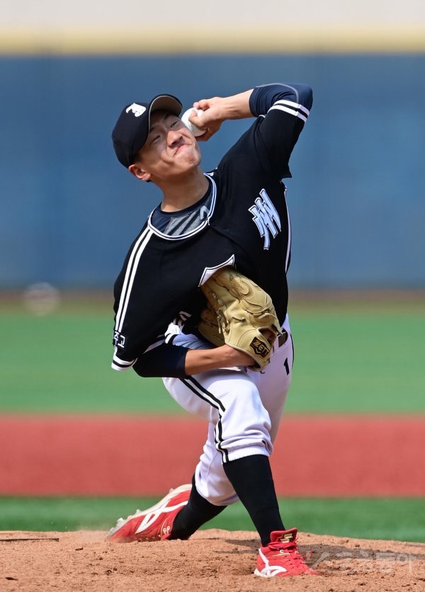 15일 서울 목동야구장에서 열린 ‘제77회 황금사자기 전국고교야구대회 겸 주말리그 왕중왕전’ 천안CS와 전주고의 경기에서 선발 투수로 마운드에 오른 전주고 홍주환이 역투하고 있다.