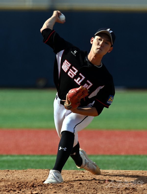 16일 서울 목동야구장에서 ‘제 77회 황금사자기 전국고교야구대회 겸 주말리그 왕중왕전’ 부산고와 물금고의 경기가 열렸다. 물금고 선발투수 서보한이 힘차게 볼을 던지고 있다.