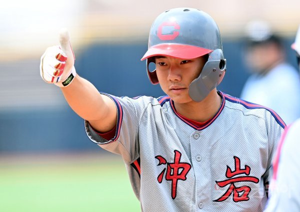 18일 서울 목동야구장에서 ‘제 77회 황금사자기 전국고교야구대회 겸 주말리그 왕중왕전’ 충암고와 전주고의 경기가 열렸다. 2회초 1사 1, 2루에서 충암고 이충현이 적시타를 날린 후 환호하고 있다.
