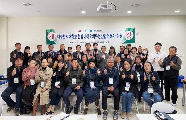 대구한의대학교 주관 시행하고 경상북도 농민교육산실 경북농민사관학교가 주최하는 한방바이오 치유농산업 전문가 과정 개강식이 최근 경산동의 한방촌에서 개최됐다고 19일 밝혔다.