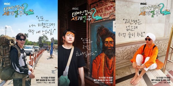 오는 6월 11일 밤 9시 10분에 첫 방송되는 MBC ‘태어난 김에 세계일주 시즌2’(연출 김지우 박동빈 신현빈 장하린, 이하 '태계일주2') 측은 30일 기안84, 덱스, 빠니보틀의 ‘인도 3인조’ 포스터를 추가로 공개했다.