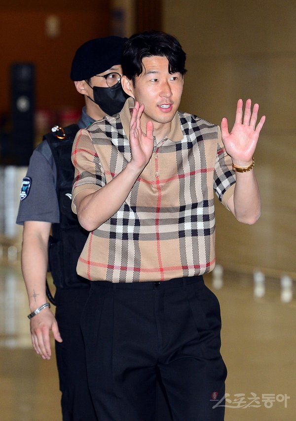 잉글랜드 프리미어리그(EPL) 2022-2023시즌을 마친 손흥민(토트넘)이 30일 인천국제공항을 통해 귀국해 팬들을 향해 손을 흔들며 인사하고 있다.