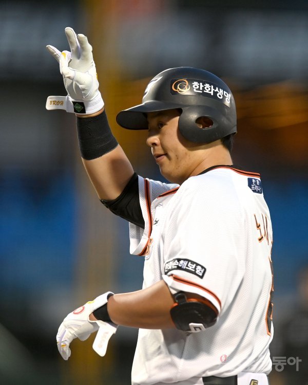 30일 대전 한화생명이글스파크 ‘2023 신한은행 SOL KBO리그’ 키움 히어로즈와 한화 이글스 경기가 열렸다. 4회말 무사 한화 노시환이 중전 안타를 치고 있다.