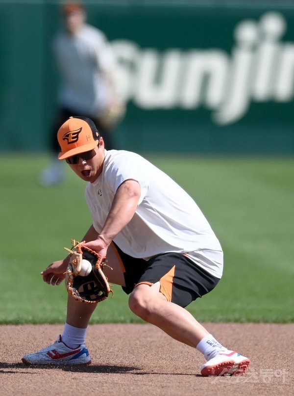 31일 대전 한화생명이글스파크 ‘2023 신한은행 SOL KBO리그’ 키움 히어로즈와 한화 이글스 경기가 열린다. 한화 노시환이 수비 훈련을 하고 있다.